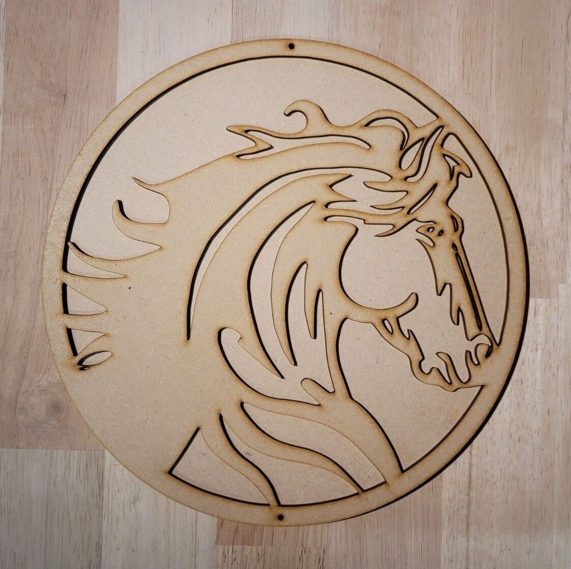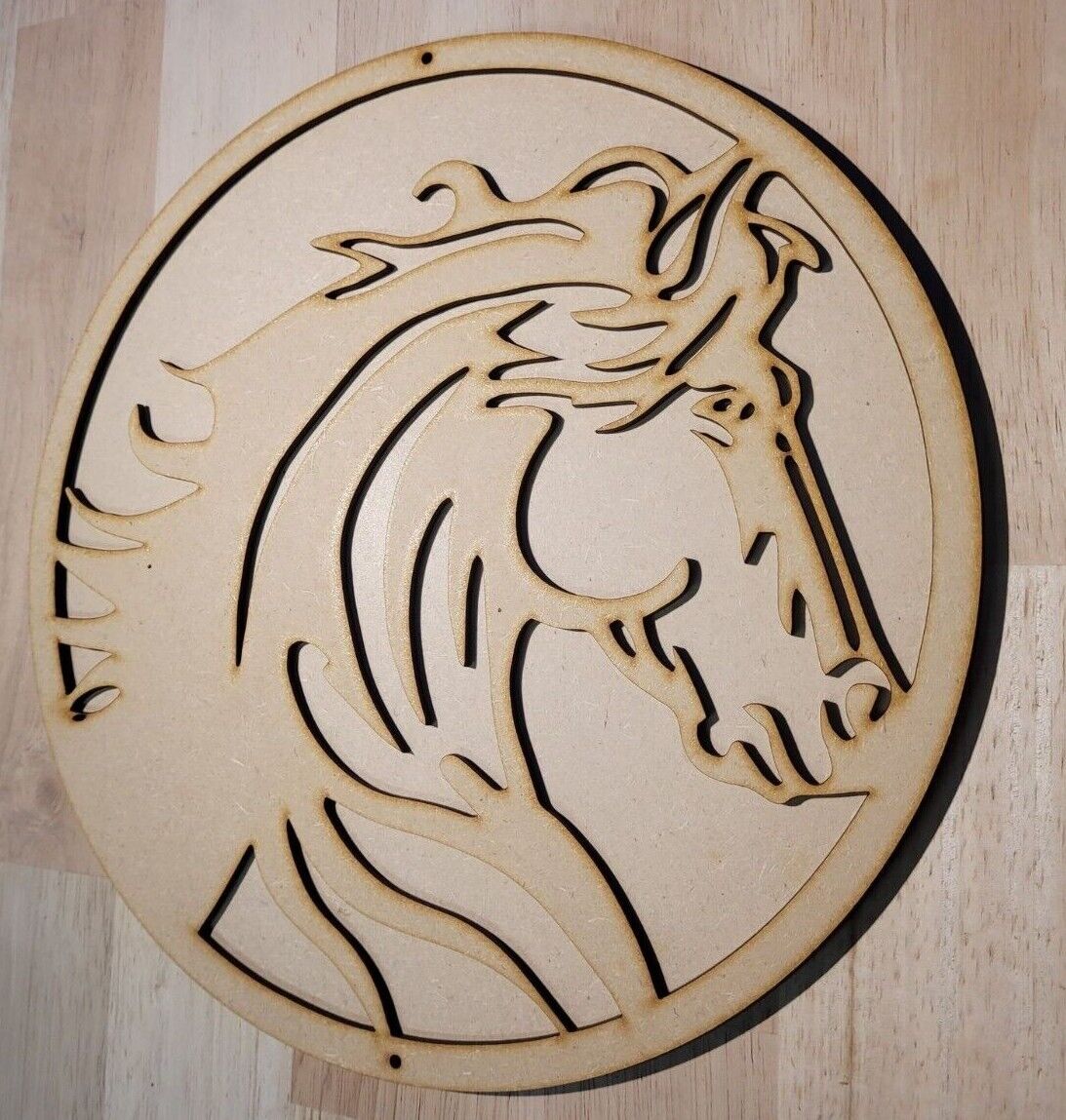 Large 3D Wooden Horse Head Logo Sign Wall Art Door Hanging Plaque unpainted