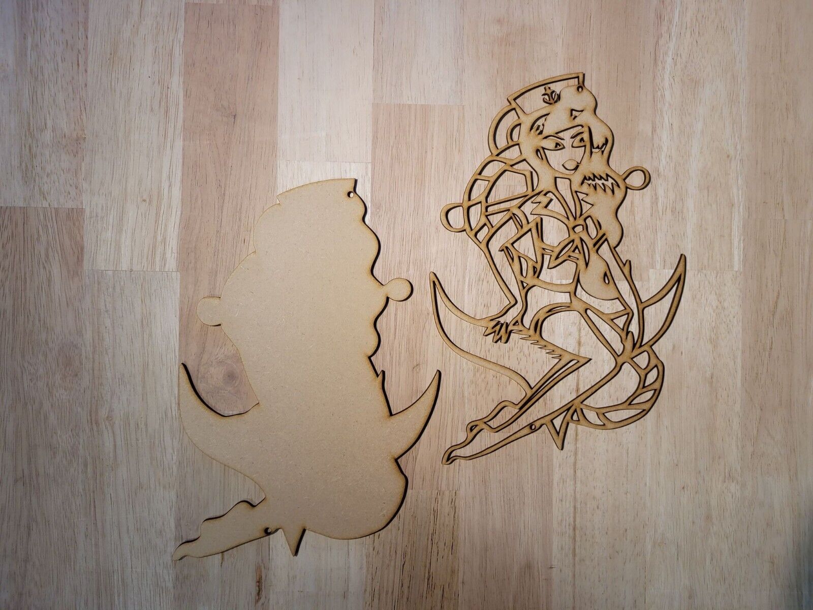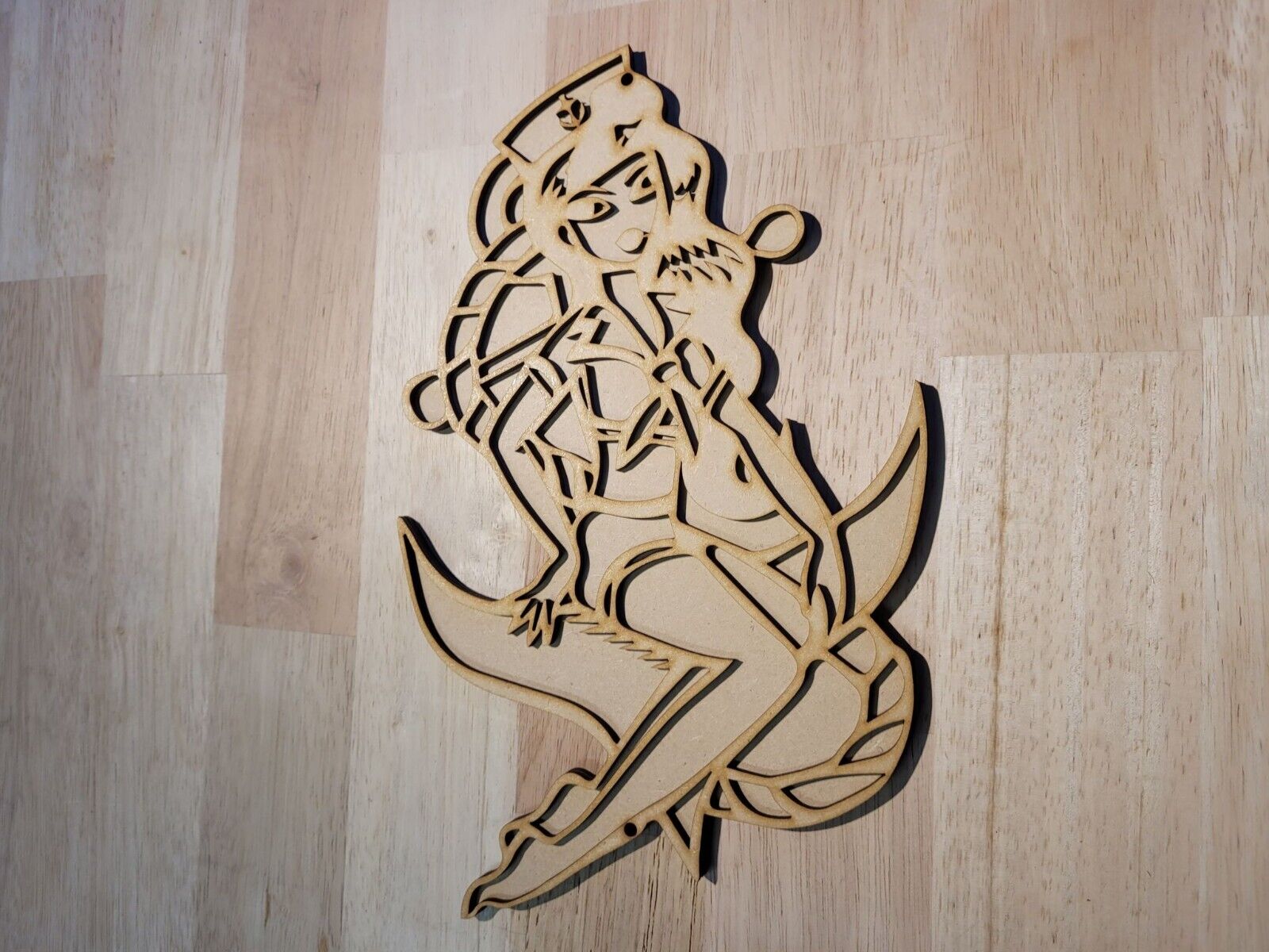 Large 3D Wooden Pin Up Girl Sailor Tattoo Sign Wall Art Hanging Plaque Unpainted