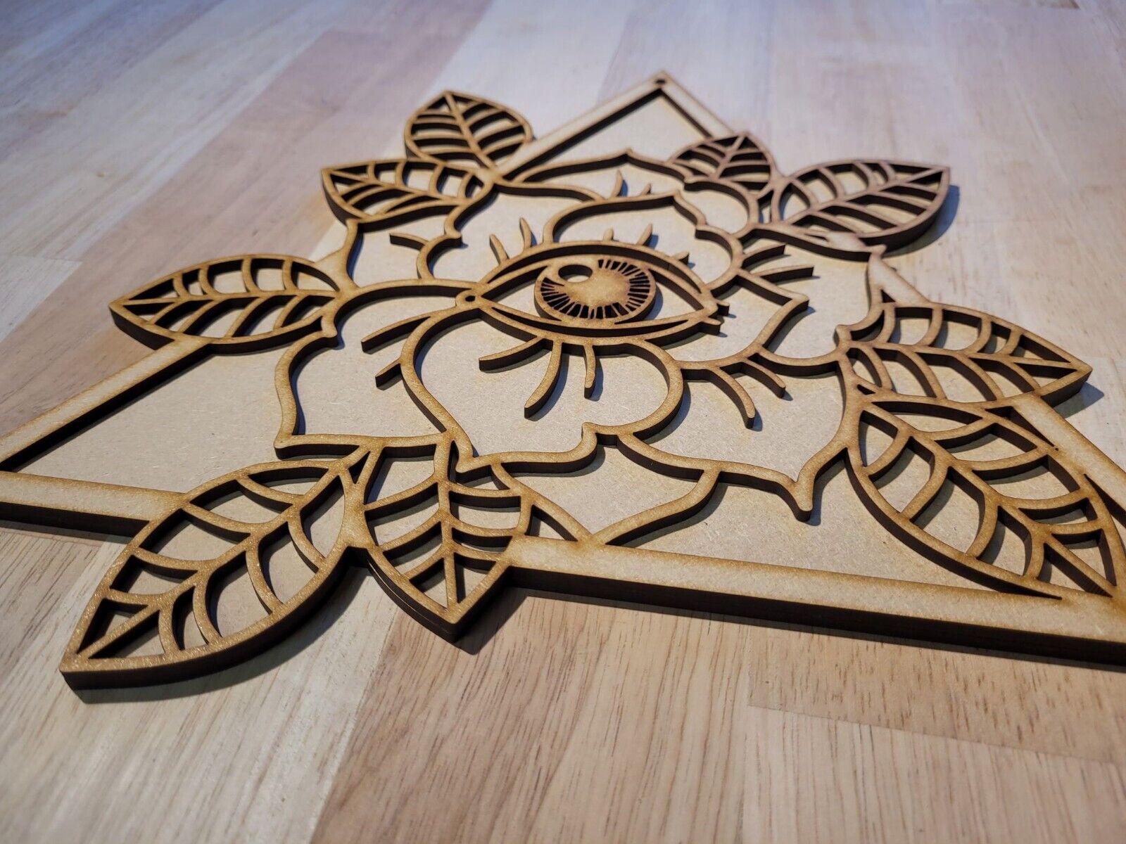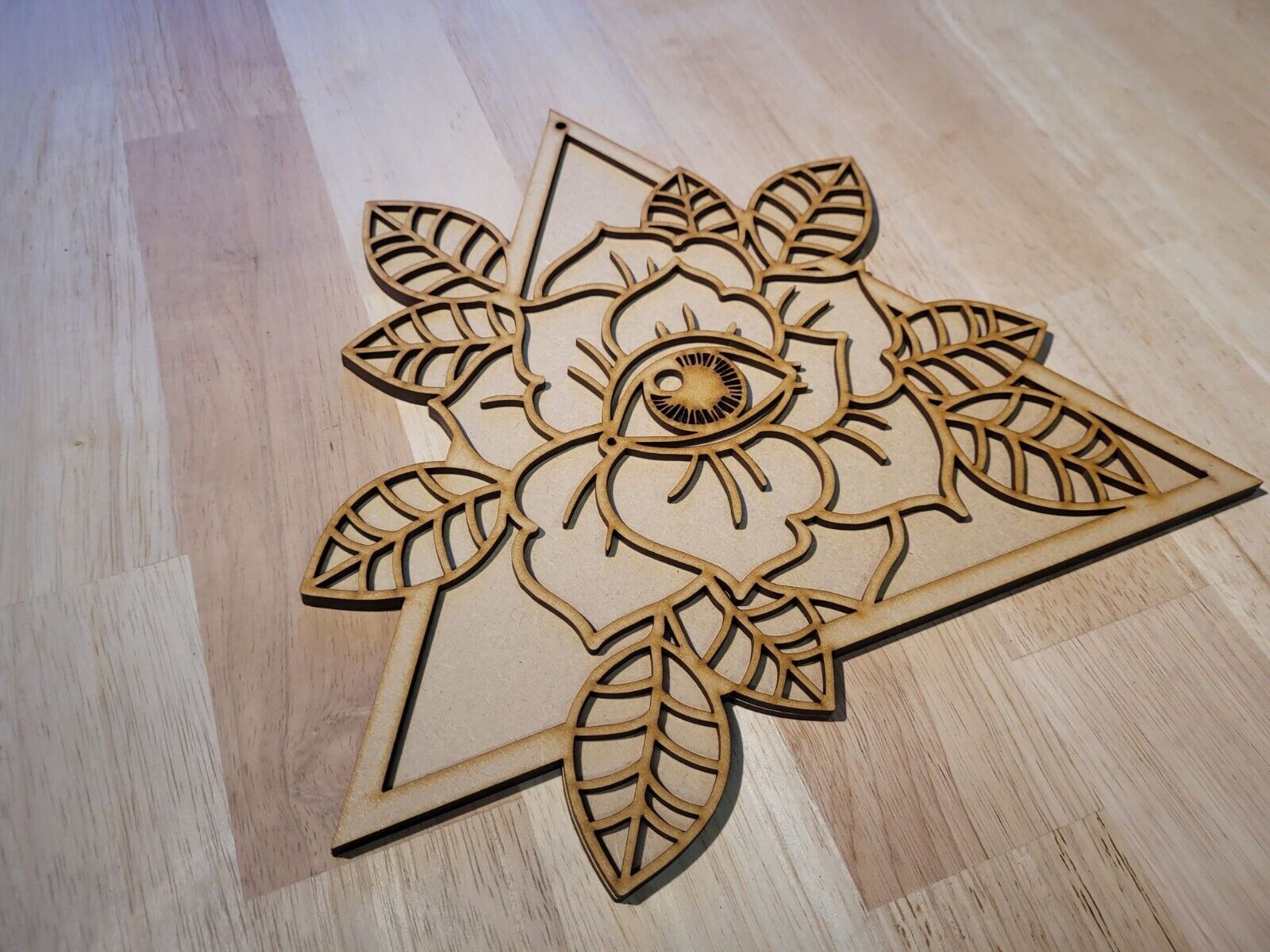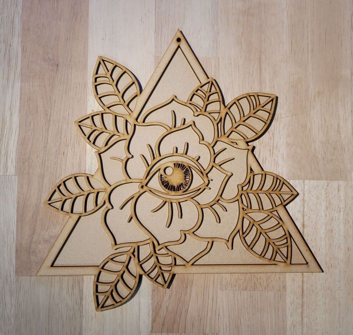 * 6 mm Thick 3D Wooden Tattoo style rose all seeing eye Sign *