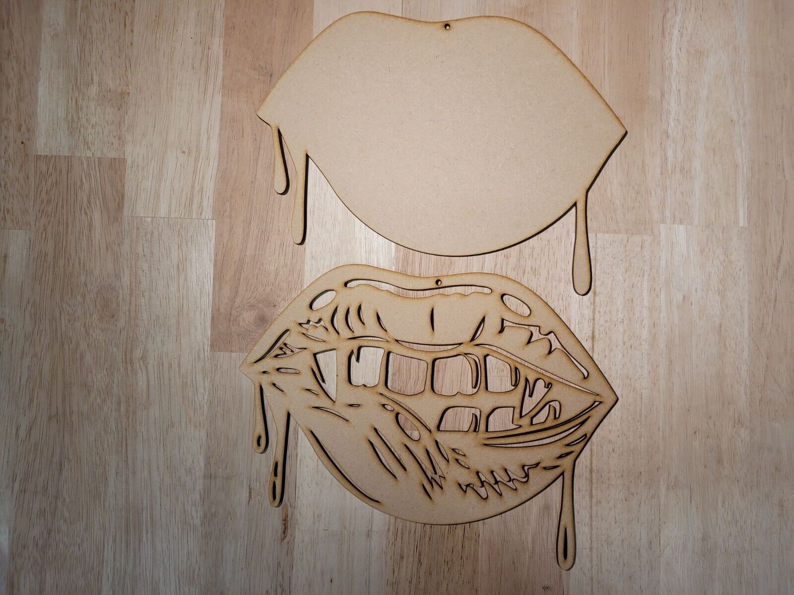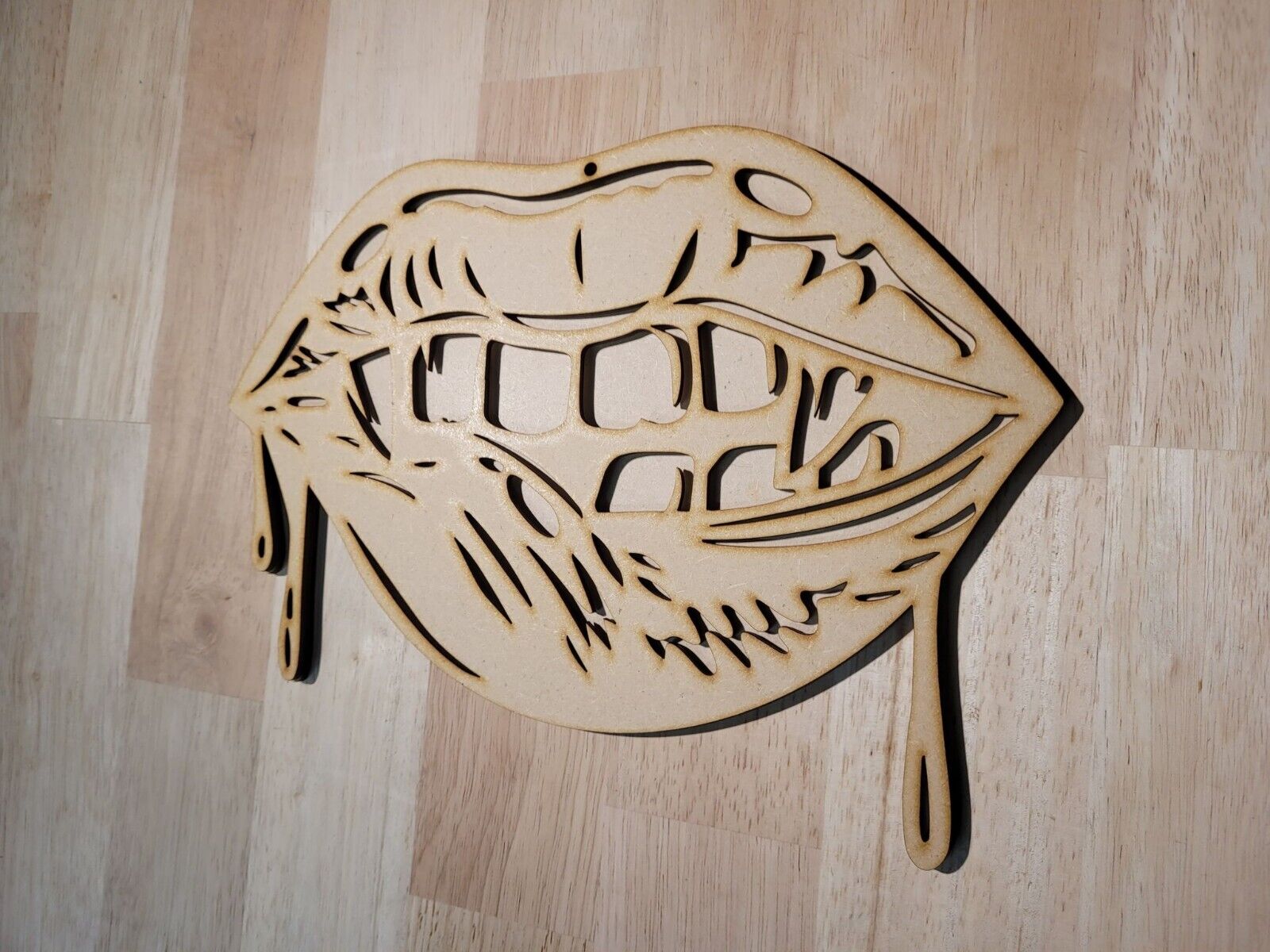 Large 3D Wooden Vampire Lips gothic Sign Wall Art Door Hanging Plaque unpainted