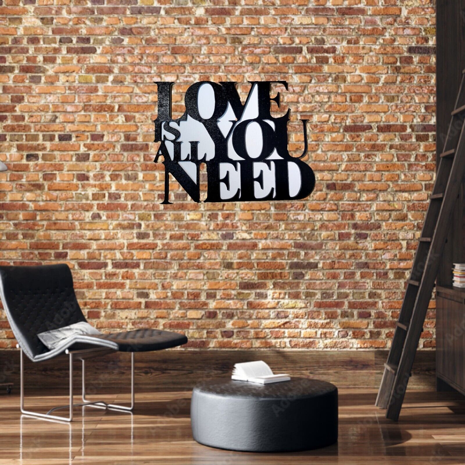 * Black & White Love Is All You Need 3D wooden Logo Sign *
