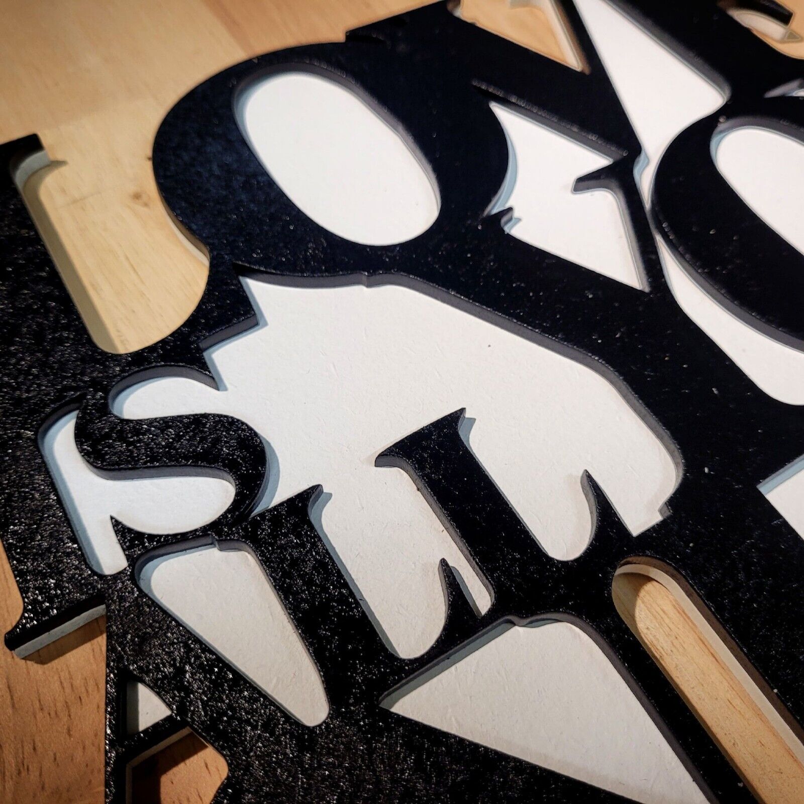 Base board painted Matt White, Top layer painted Black (both layers are only painted on the top side)