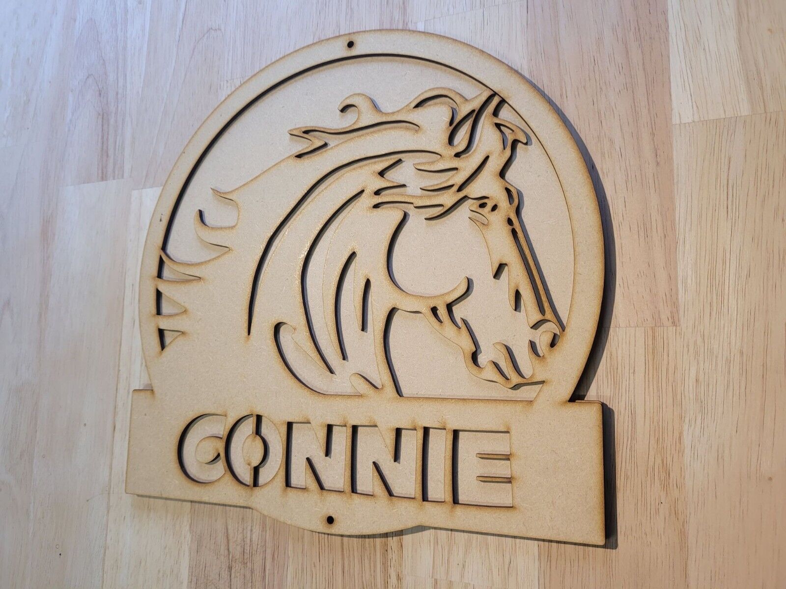 Large wooden 3D Any Name Horse Sign Kids Room Wall art Door Hanging unpainted