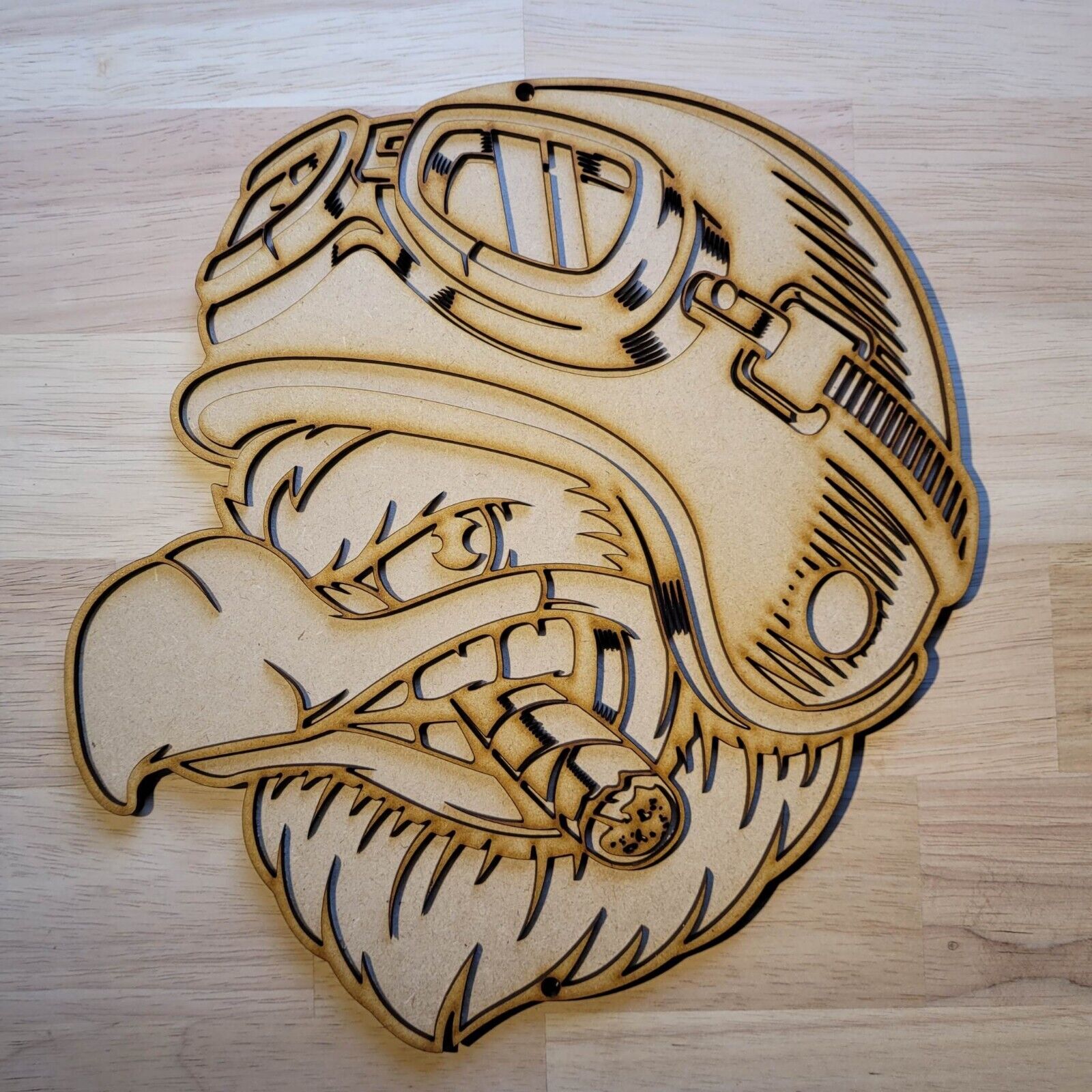 * 6 mm Thick 3D Wooden Bald Smoking Eagle Decorative Sign *