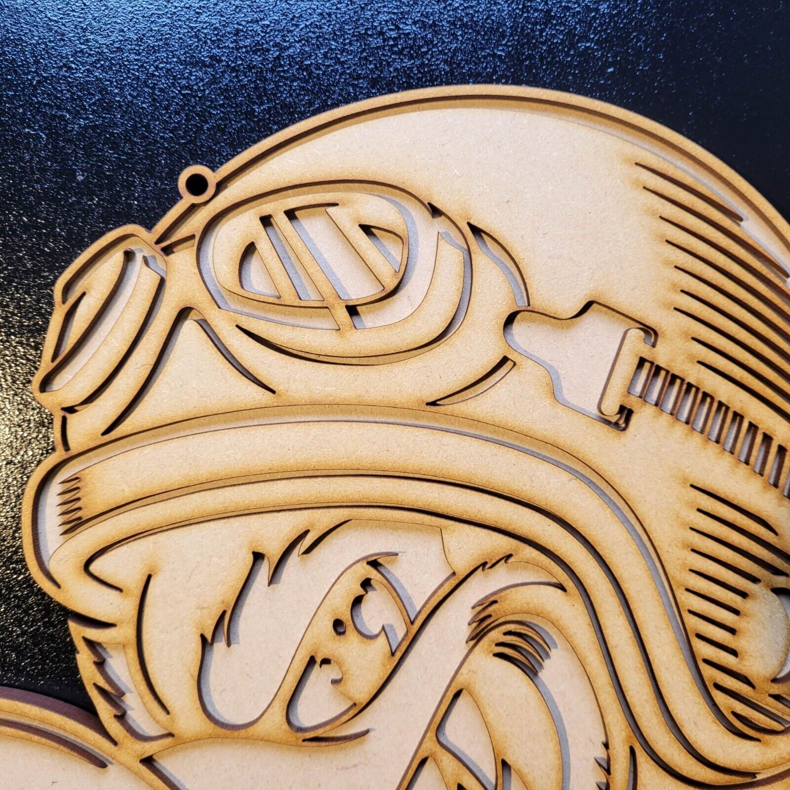 Add some energy to your home, garage, or man cave with this Large 3D Motorcycle Wolf Biker Wall Art. This piece features a Cafe Racer Wolf Biker, crafted into a stunning 3D design that adds a unique touch to any space. The Plaque is unpainted so ready for you to paint it to match your decorative needs.
