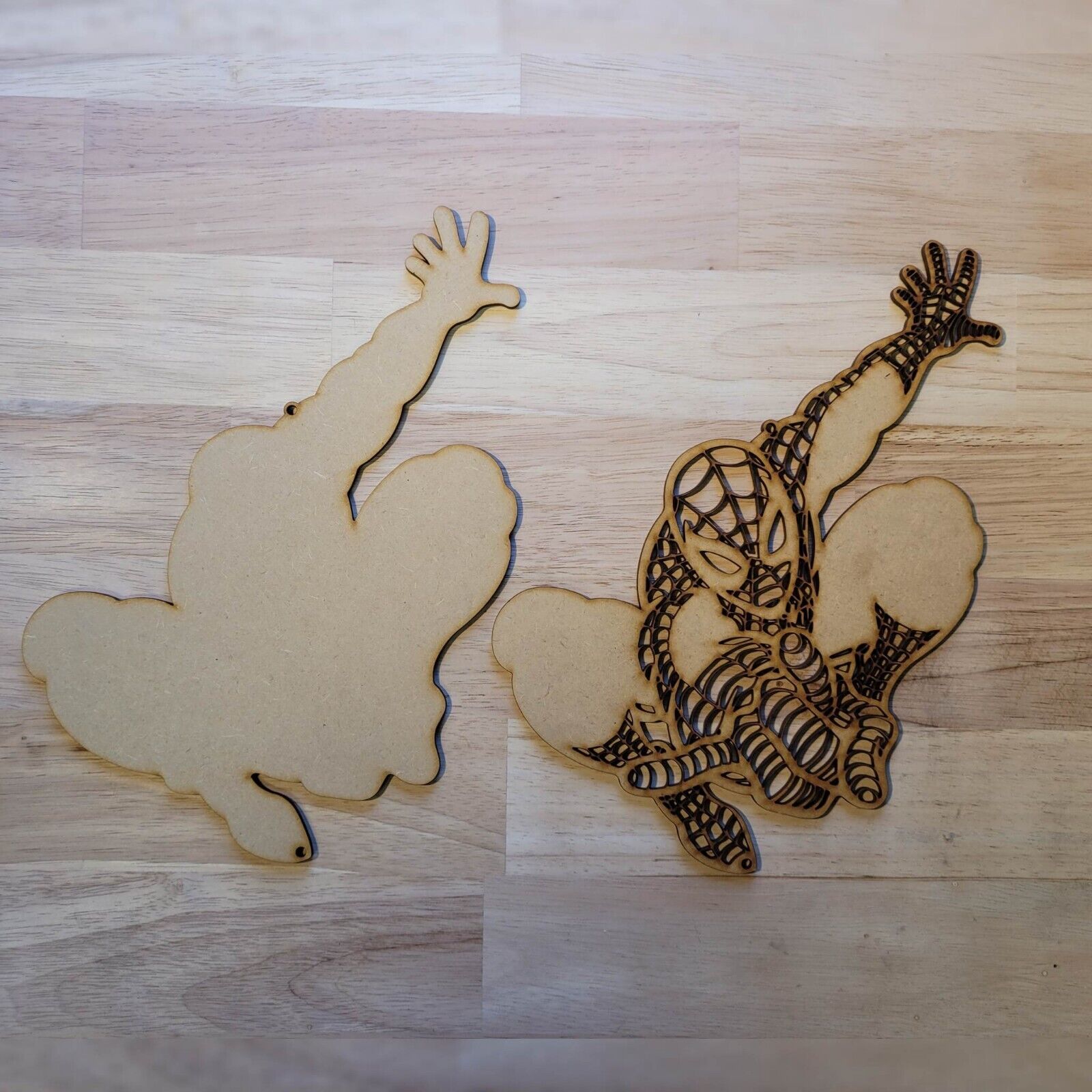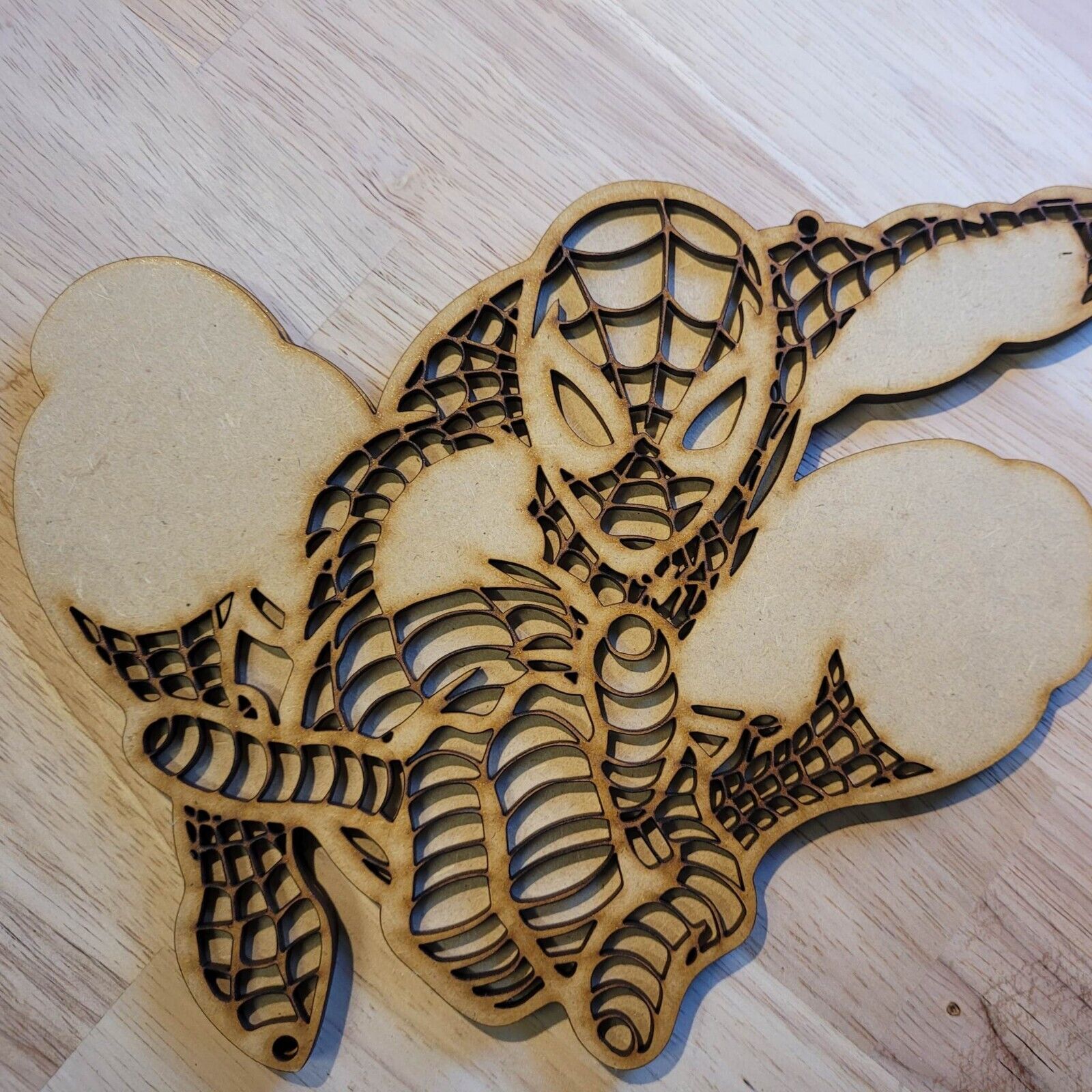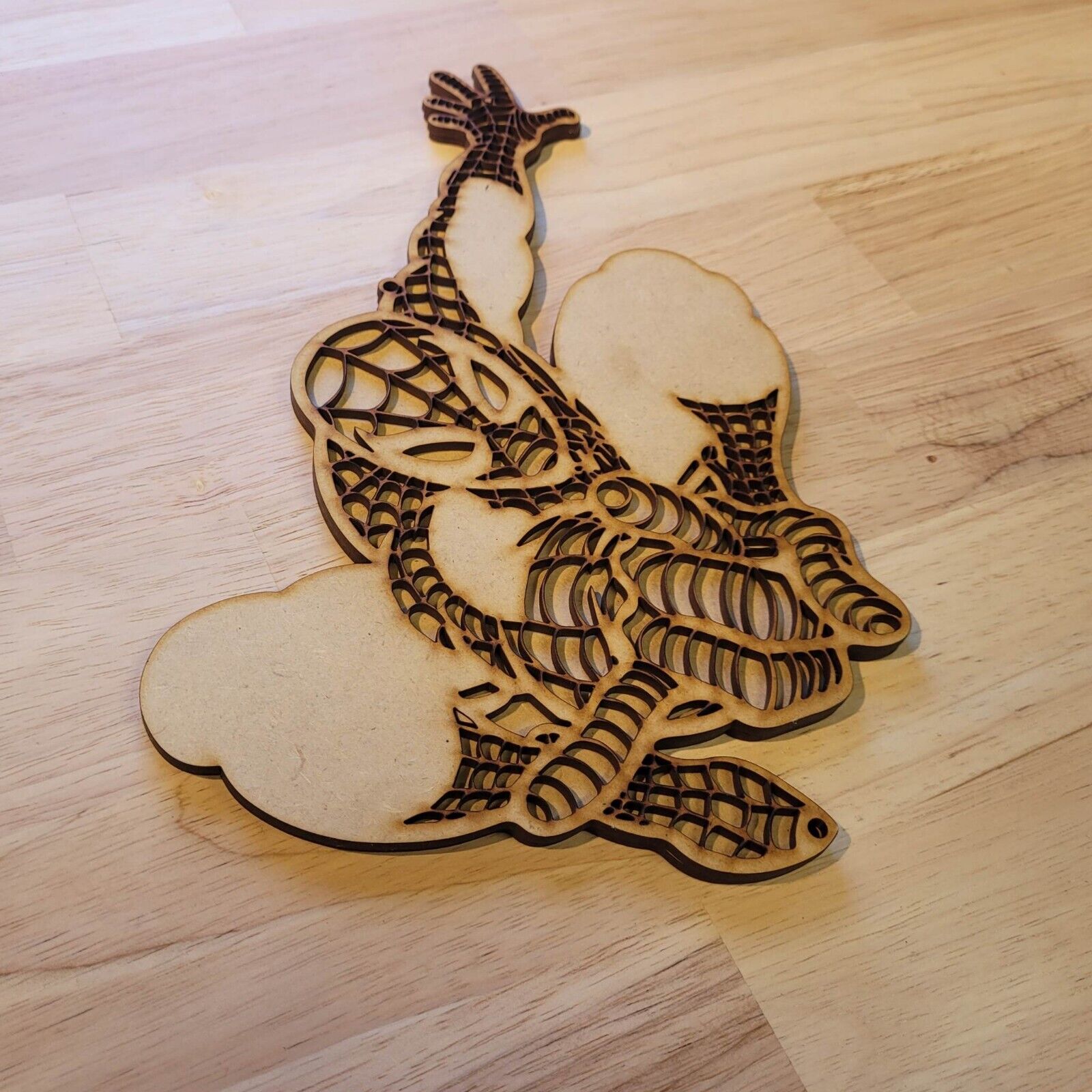 Large Wooden 3D Swinging Spider Man Sign Wall Art Hanging Plaque unpainted Kid's