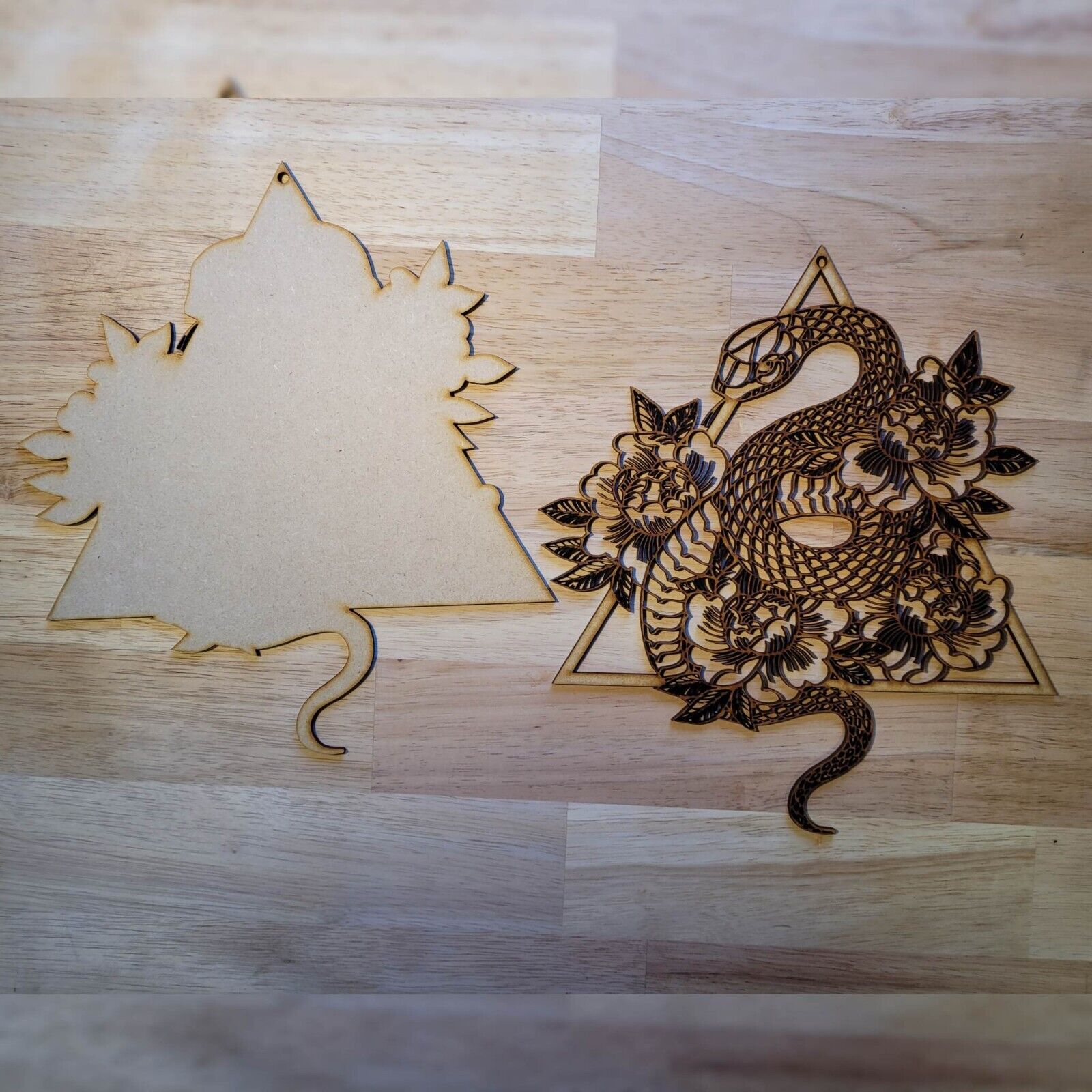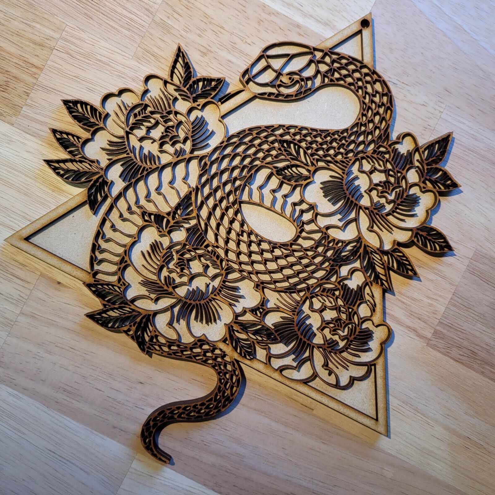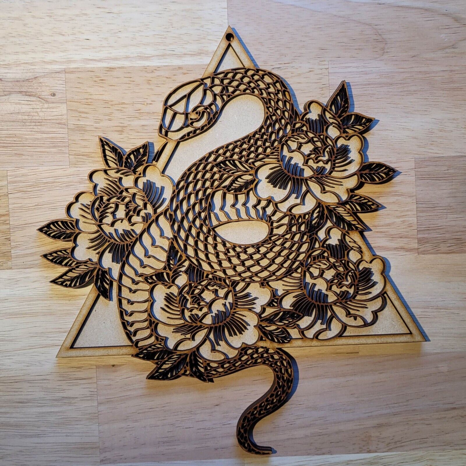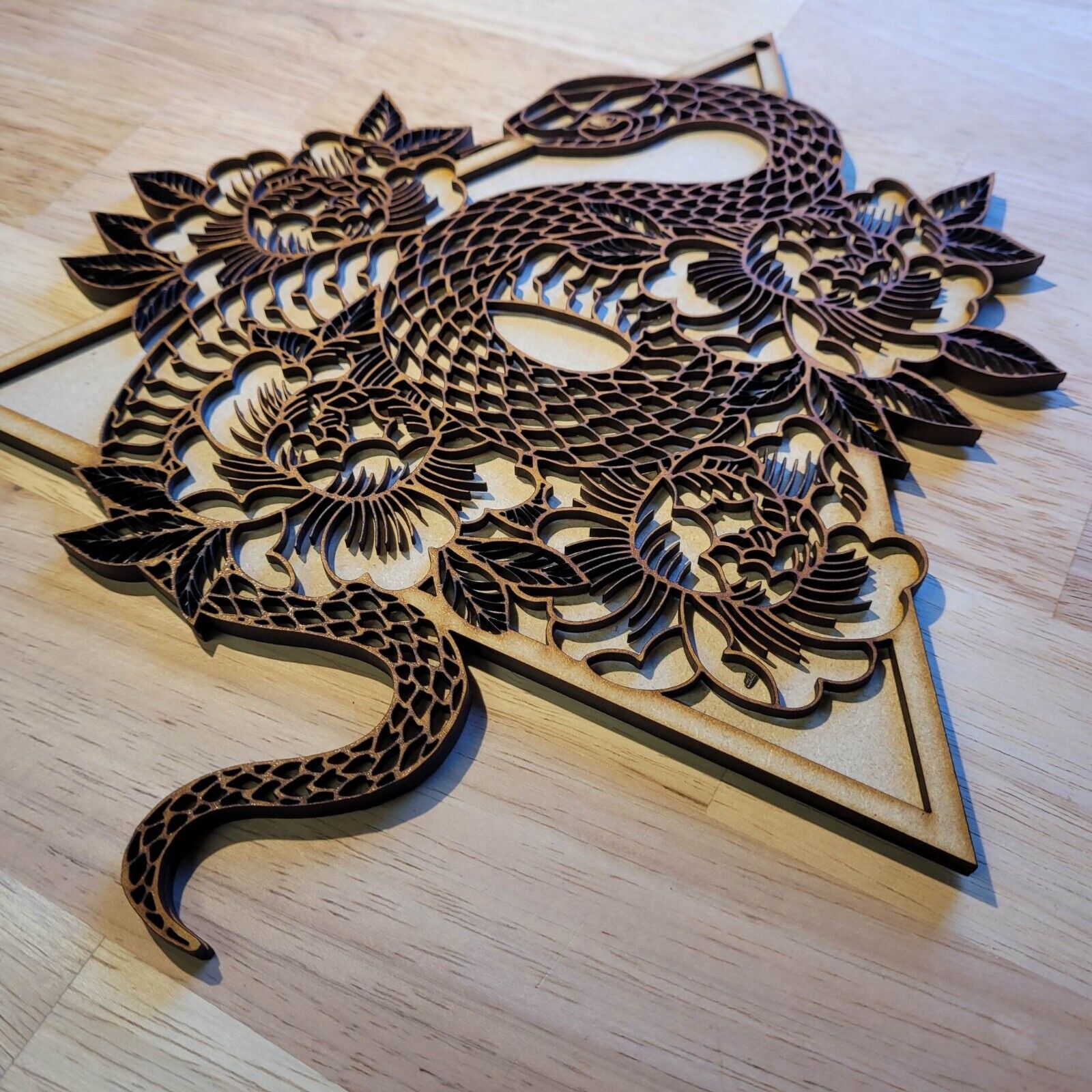 Large Wooden 3D Tattoo Style Flower Snake Sign Wall Animal Plaque Ready to Paint